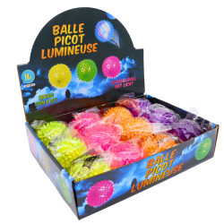 Cette balle picot colorée, de plus de 7cm de diamètre, rebondie et s'illumine !