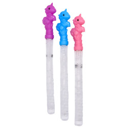 Grand bâton à bulles de 37cm avec bouchon en forme de Licorne colorée pour faire une multitude de bulles de savon grâce au souffleur "multibulles"